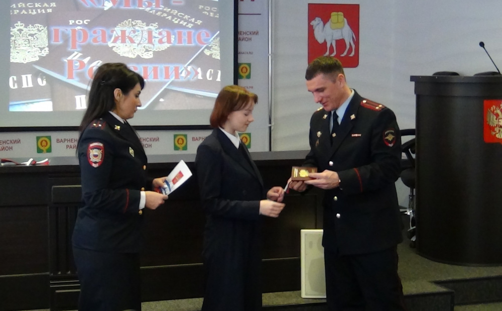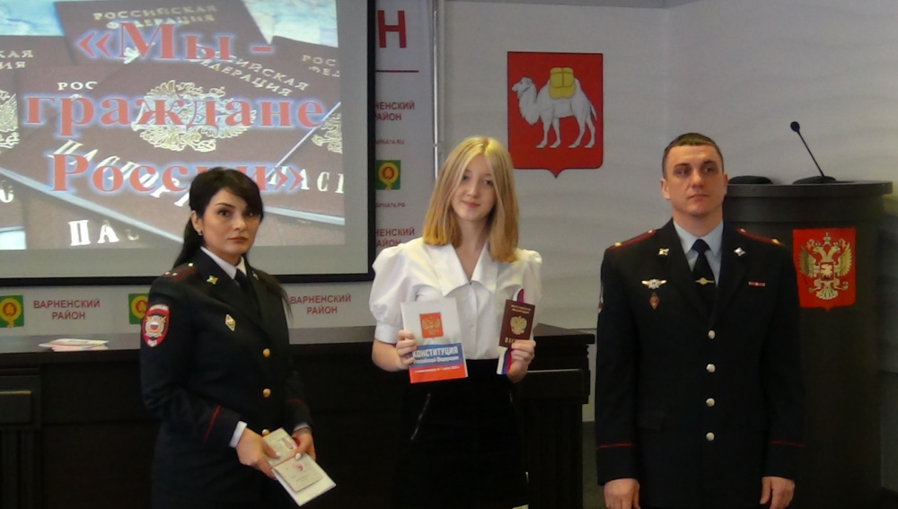В зале администрации Варненского муниципального района состоялось торжественное вручение первых паспортов 13 юным жителям района, достигшим 14-летнего возраста. Мероприятие приурочено к празднованию Дня Конституции. Поддержать ребят и разделить с ними радостный момент пришли их родители и родственники.