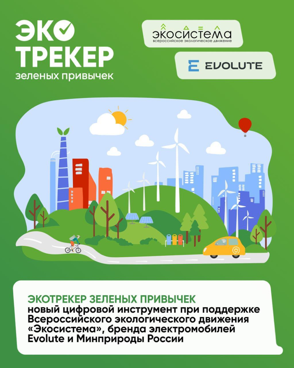 👉 Экотрекер запущен Всероссийским экологическим движением «Экосистема» при поддержке Минприроды России и бренда электромобилей Evolute. Проект соответствует целям нацпроекта «Экологическое благополучие».