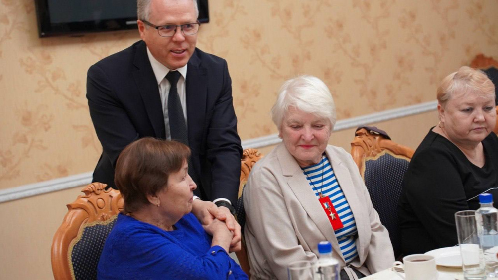 После церемонии возложения цветов состоялся прием родственников героев Российской Федерации, погибших в ходе выполнения боевых задач.
