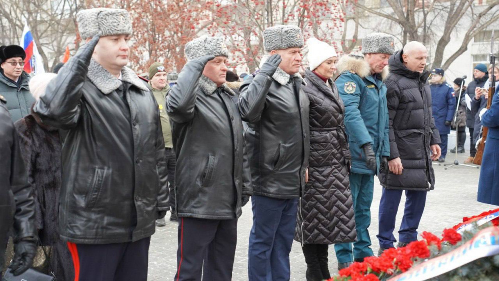 У мемориала «Доблестным сынам Отчества» на Аллее Славы в Челябинске состоялось торжественное возложение венков и цветов по случаю Дня Героев Отечества. Эта памятная дата в России ежегодно отмечается 9 декабря.