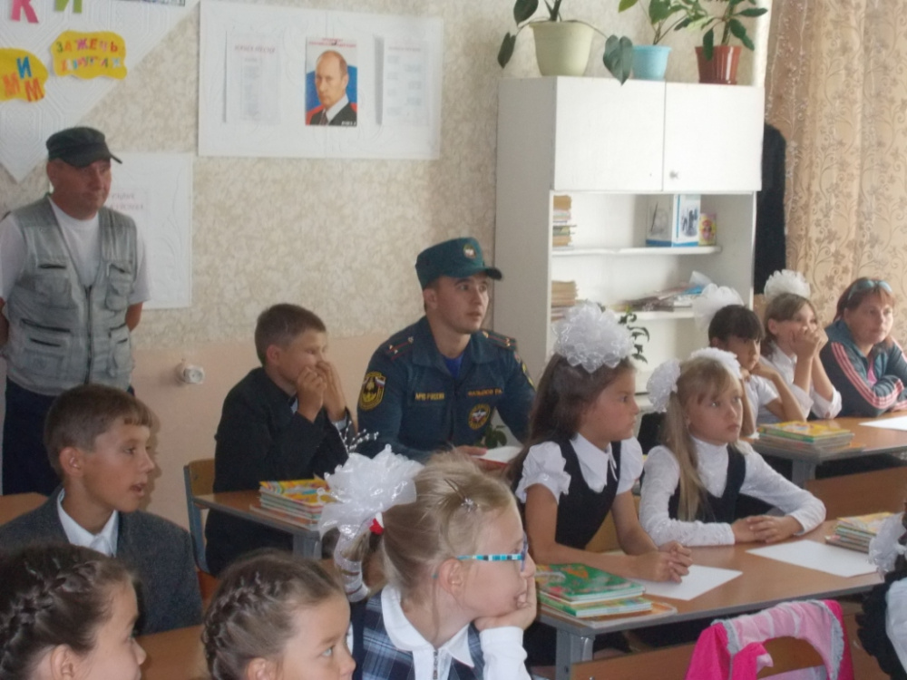 В День знаний -1 сентября сотрудниками 58 пожарно-спасательной части был проведен открытый урок в 4 классе МОУ СОШ №2.