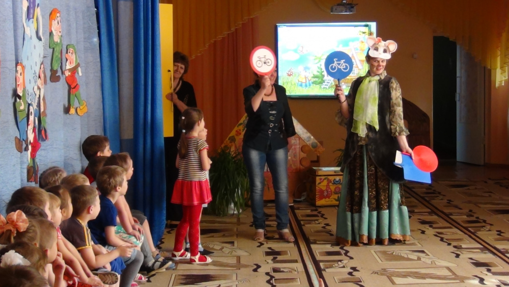 Известно, что малыши лучше усваивают знания не в обыкновенном заучивании правил дорожного движения, а в игровой форме. Поэтому дошколята вместе со сказочными персонажами «мышкой» и «светлячком», изучали и повторяли дорожные знаки, правила безопасного перехода проезжей части и места для безопасного катания на велосипедах и самокатах. Дети должны были выполнять определённые движения на разные сигналы светофора.