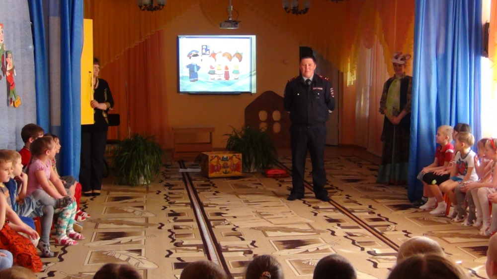 Государственный инспектор ГИБДД старший лейтенант полиции Денис Морозов подробно рассказал малышам о соблюдении Правил дорожного движения, разъяснил, что в тёмное время суток водитель не сможет заметить пешехода без светоотражающего элемента, и поэтому детям были вручены светоотражающие ленточки, которые родители должны прикрепить к верхней одежде малышей.