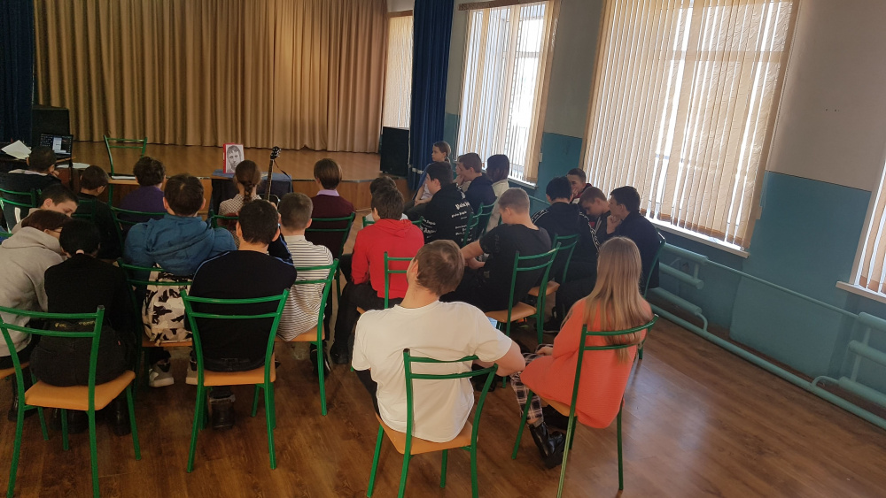 На творческую встречу "В кругу своих...", посвященную этому неординарному человеку, мы пригласили учащихся старших классов. Для них прозвучали интересные факты биографии Высоцкого, отрывки аудиофайлов в исполнении автора, фрагменты из интервью и кинофильмов, где он играл.