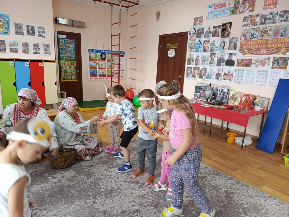 Далее дети познакомились с Яблочным Спасом и приняли участие в увлекательных играх: «Хвалёное яблочко», «Яблочные фанты», «Колесо» и «Собери яблоки». Эти игры позволили детям не только весело провести время, но и узнать больше о традициях праздника.