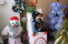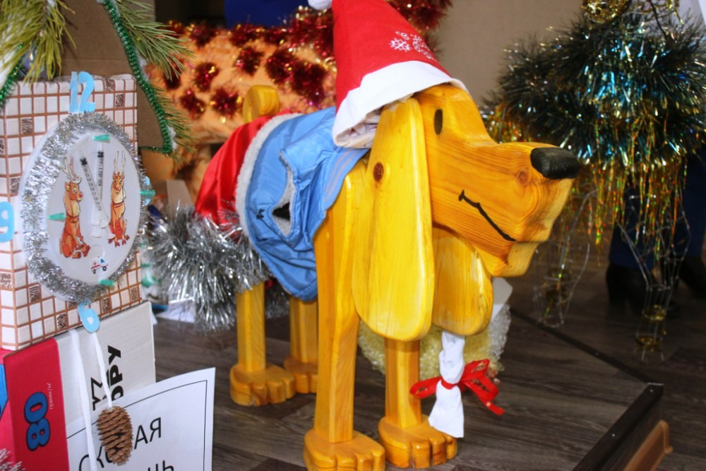 Все поделки были оригинальные, необычные, изготовленные из подручных материалов. Были представлены поделки в виде сказочных героев: Емеля на печи, светящийся олень, Баба Яга, а также снеговики, ёлочки и конечно же символ 2018 года – собака.