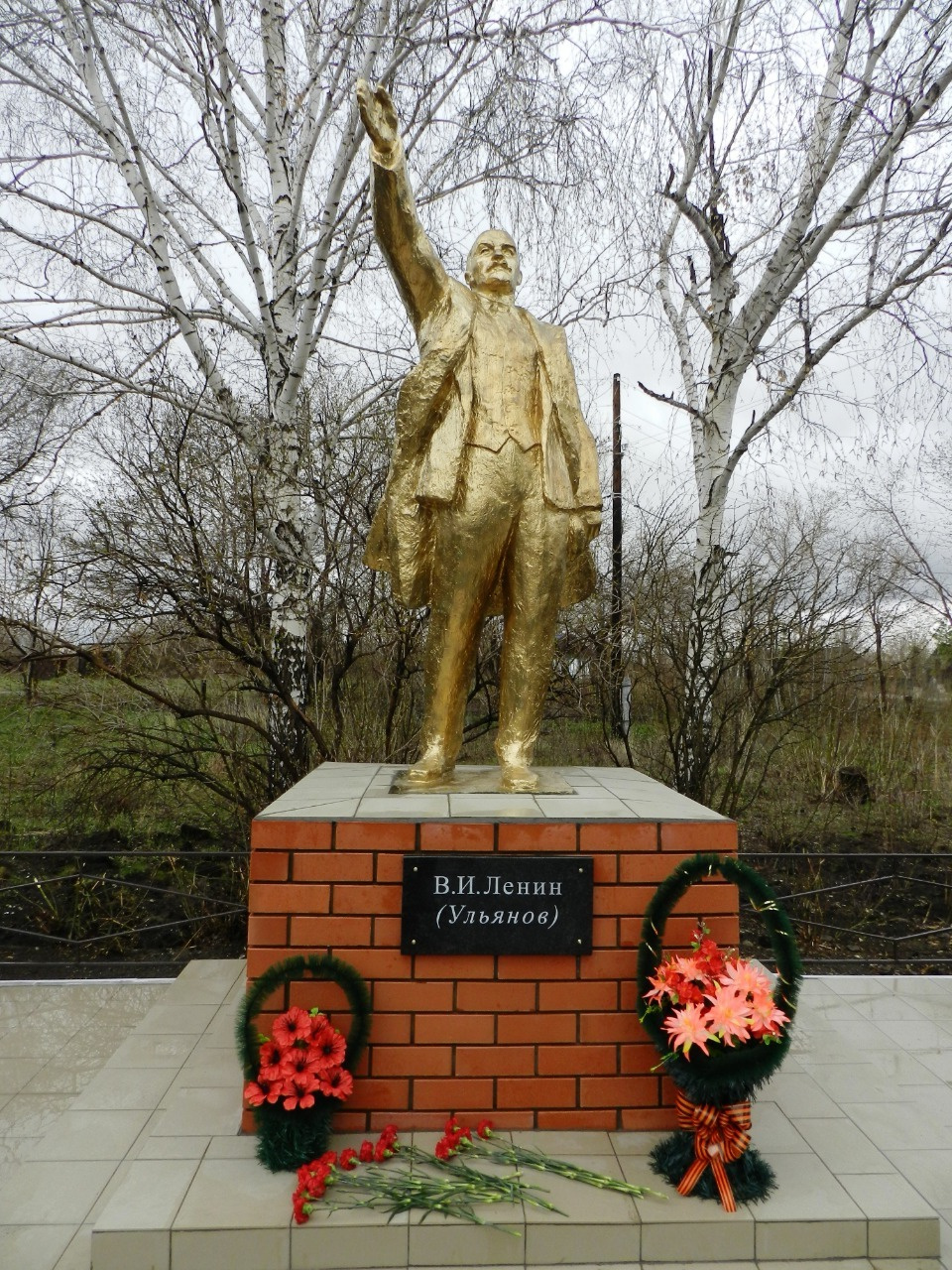 Памятник Ленину с человеческий рост, он изготовлен из металлического сплава и установлен на постаменте. Работы произведены силами ООО «Спецмонтаж» (руководитель — Н.Г. Рахмеев): была проведена частичная реставрация, ограждение и покраска монумента и его основания.