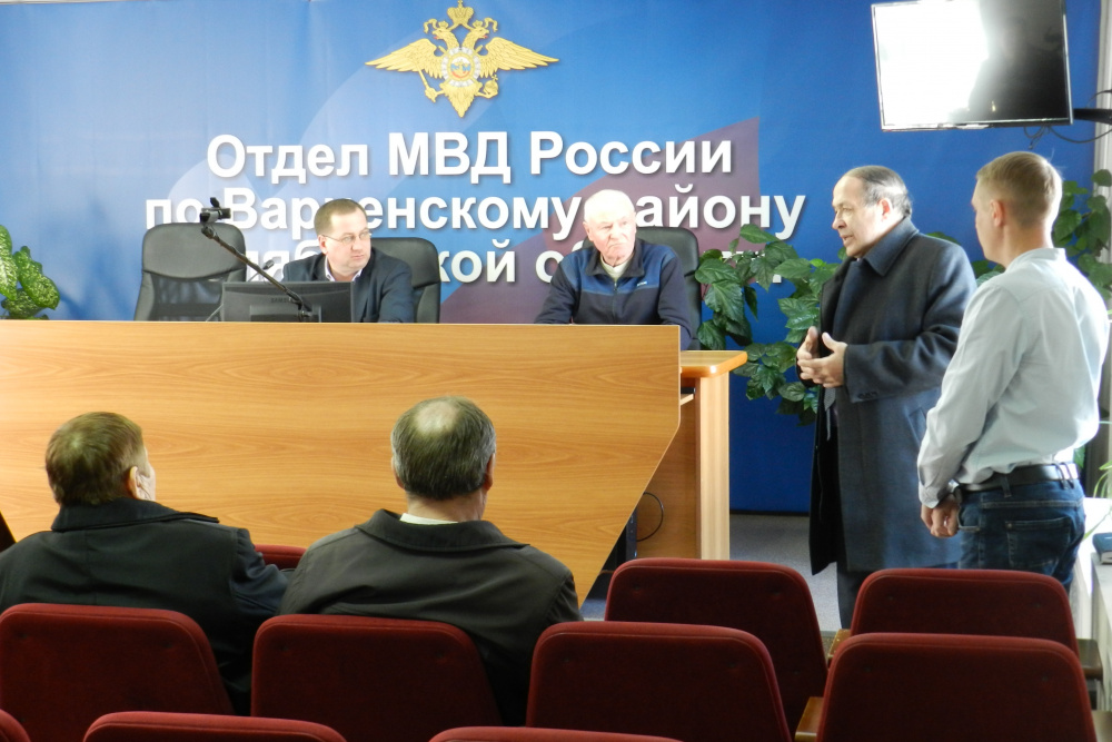 В Отделе МВД России по Варненскому району состоялось отчетно-выборное заседание Совета ветеранов при ОМВД. На заседании присутствовали начальник отдела подполковник полиции Алексей Шубин, заместитель начальника отдела подполковник внутренней службы Николай Рыбаков, инспектор направления профессиональной подготовки лейтенант внутренней службы Людмила Шмидт и представители ветеранской организации.