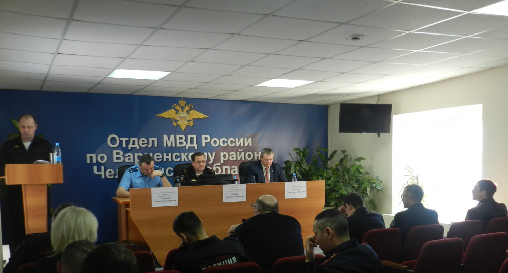 Под председательством начальника ОМВД России по Варненскому району подполковника полиции Алексея Шубина в актовом зале отдела состоялось совещание по подведению итогов деятельности по итогам 12 месяцев 2022 года. На заседании присутствовали глава Варненского муниципального района Константин Моисеев, исполняющий обязанности прокурора Варненского района советник юстиции Егор Свиридов, личный состав отдела.
