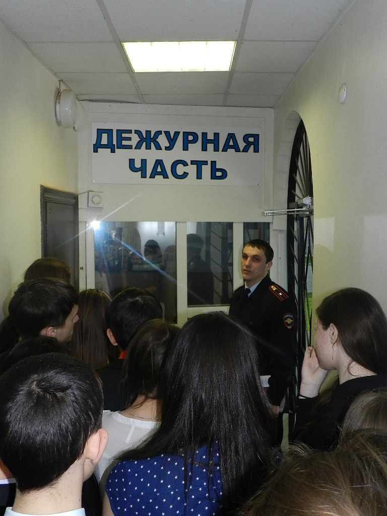Экскурсия по отделу началась с дежурной части, изолятора временного содержания, ребята прошли по кабинетам отдела, увидев работу сотрудников полиции.