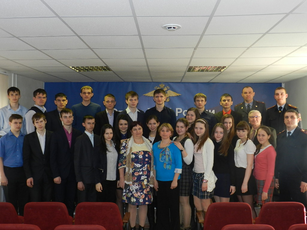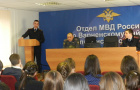 На встречу с будущими выпускниками пришли начальник отдела по работе с личным составом майор внутренней службы Николай Рыбаков, инспектор направления профессиональной подготовки лейтенант внутренней службы Алексей Катрюк, почетный ветеран МВД подполковник милиции в отставке Виктор Иванович Артемьев и курсант Уфимского юридического института МВД России Тимур Мустафин, проходящий практику в ОМВД.