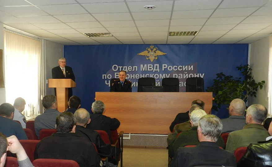 В актовом зале Отдела МВД России по Варненскому району состоялось торжественное собрание, посвящённое 5-летнему юбилею Дня ветерана органов внутренних дел и внутренних войск Российской Федерации, на котором присутствовали ветераны и личный состав отдела.