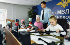 Затем в актовом зале экскурсантов увлёк рассказ об оружии полицейских и средствах защиты. Дети задавали много интересующих вопросов про работу полицейских, службах, оружии, получая на них ответы. Все желающие смогли примерить на себя каску и взять в руки щит.