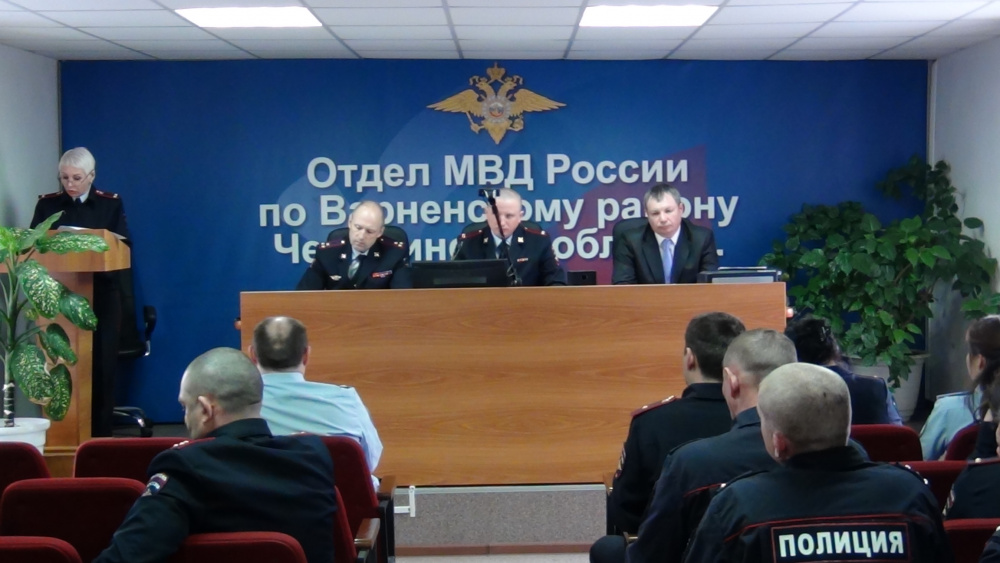 10 апреля в Отделе МВД России по Варненскому району состоялось совещание по подведению итогов оперативно-служебной деятельности за 1 квартал текущего года. На мероприятии присутствовали начальник ОРЧ СБ ГУ МВД России по Челябинской области полковник полиции С.Г. Писклов, глава Варненского муниципального района К.Ю. Моисеев, председатель Общественного совета при ОМВД России по Варненскому району А.Д. Акиньшина, председатель Совета ветеранов Р.Ф. Нургалеева.