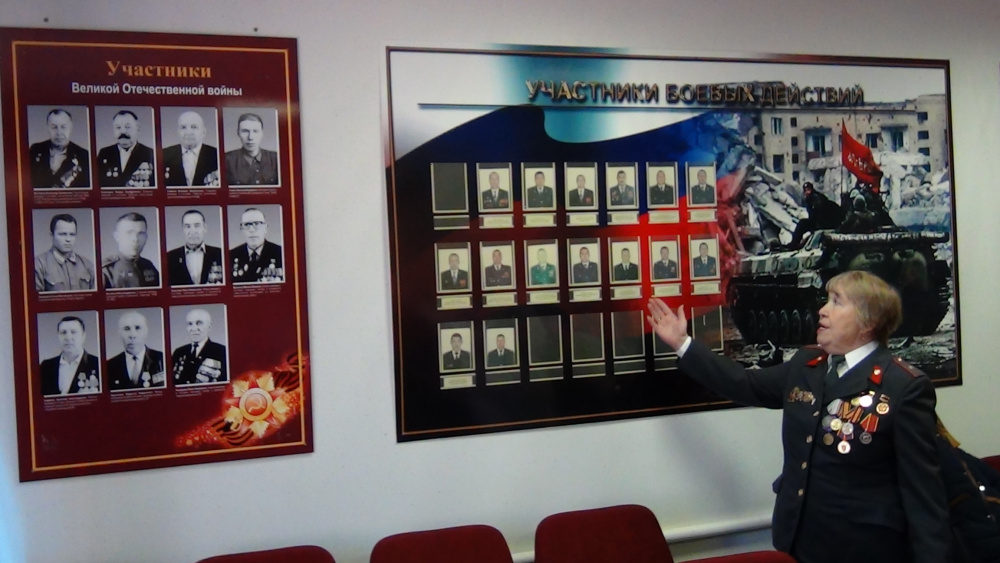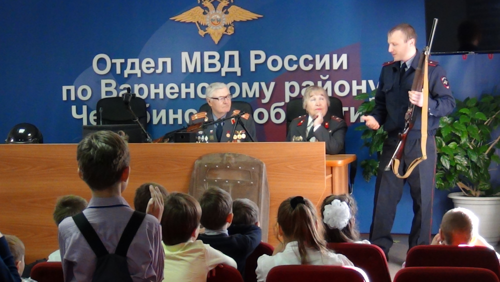 В актовом зале председатель Совета ветеранов майор милиции в отставке Р.Ф. Нургалеева и подполковник милиции в отставке В.И. Артемьев, рассказали присутствующим об истории образования ОМВД, дети так же узнали о ветеранах Великой Отечественной войны и участниках боевых действий отдела.