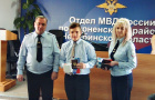 Церемонию вручения первых паспортов провели начальник отдела подполковник полиции Алексей Шубин и начальник отделения по вопросам миграции майор полиции Олеся Самокиш.