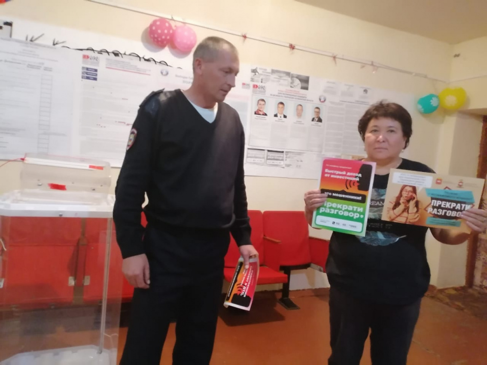 Стражи порядка посетили магазины, общественные места, на избирательных участках, в день голосования, вручали гражданам профилактические памятки, рассказывая при этом о распространенных способах мошеннических действий, подробно останавливаясь на том, как можно избежать преступных уловок.