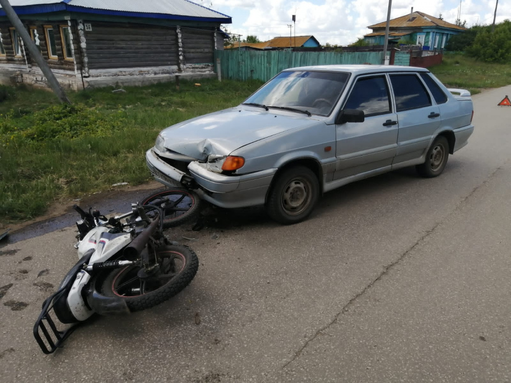 14 июня в 11.30 несовершеннолетний водитель 2008 года рождения (учащийся МОУСОШ с. Бородиновка) управляя мопедом по ул. Братьев Соловых с. Бородиновка без мотошлема, не справился с управлением, выехал на полосу предназначенную для встречного движения (выезд разрешен), совершил столкновение со встречной автомашиной ВАЗ-21154, под управление водителя 1985 г.р. В результате ДТП несовершеннолетний водитель мопеда получил телесные повреждения, с места происшествия был доставлен в ГБУЗ «Районная больница» с. Варна, назначено амбулаторное лечение.