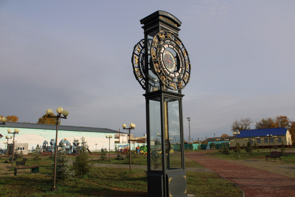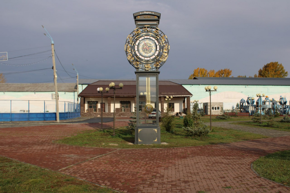 Жители и гости села Варна теперь могут "сверить часы" по уникальным в России башенным механическим часам со швейцарским механизмом. Часы, диаметр циферблата которых достигает 2 метра, были установлены несколько дней назад в сквере имени Гагарина.