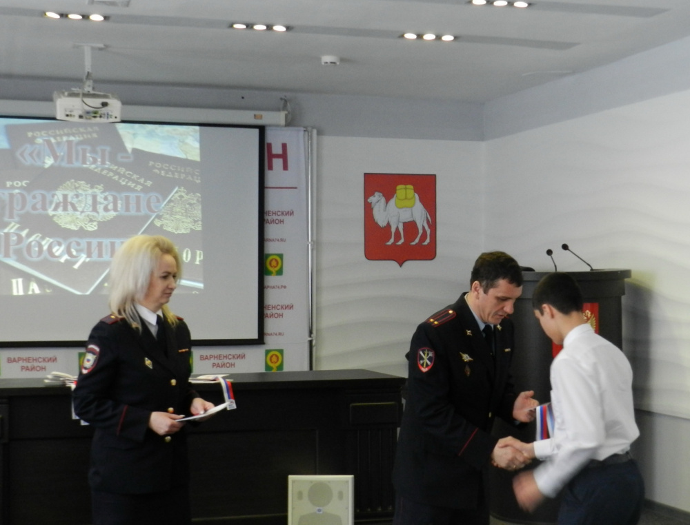 В зале администрации Варненского муниципального района состоялось торжественное вручение первых паспортов 12 юным жителям района, достигшим 14-летнего возраста. Мероприятие приурочено 99 годовщине образования Варненского муниципального района. Поддержать ребят и разделить с ними радостный момент пришли их родители и родственники.