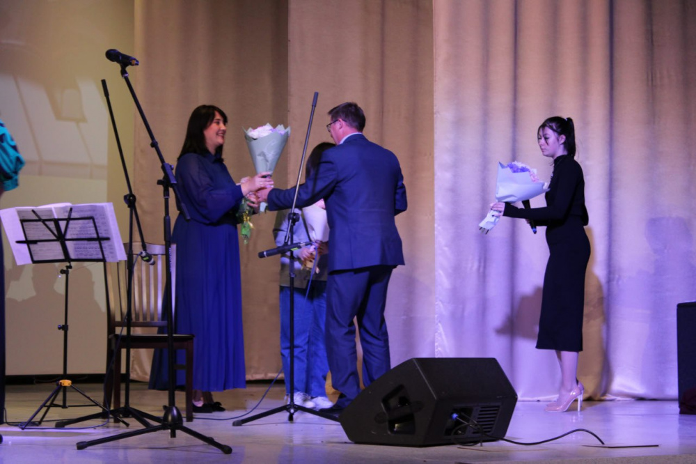 В завершение торжественного вечера артистам вручили цветы и выразили слова благодарности за подаренный праздник.