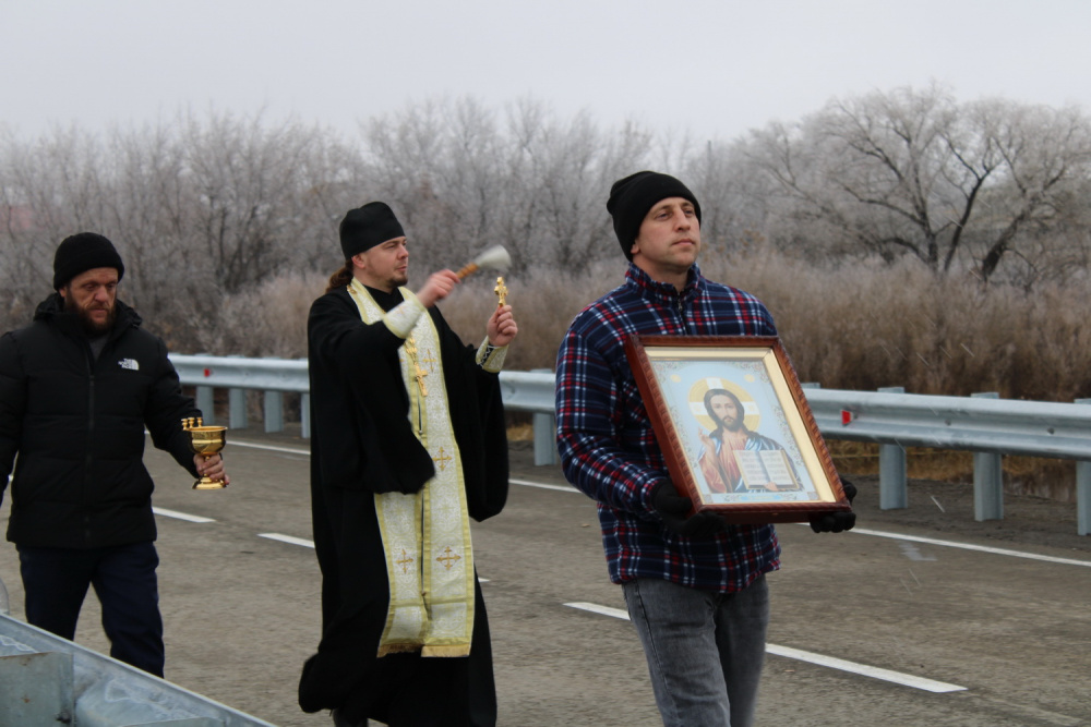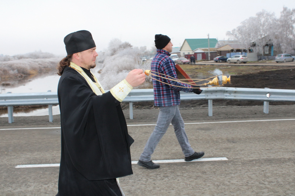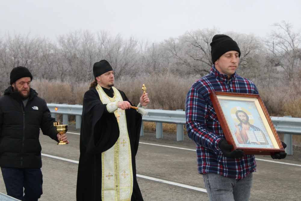 Перед церемонией открытия обновлённая плотина была освещена настоятелем Храма Рождества Пресвятой Богородицы иереем Стефаном Андрейко.