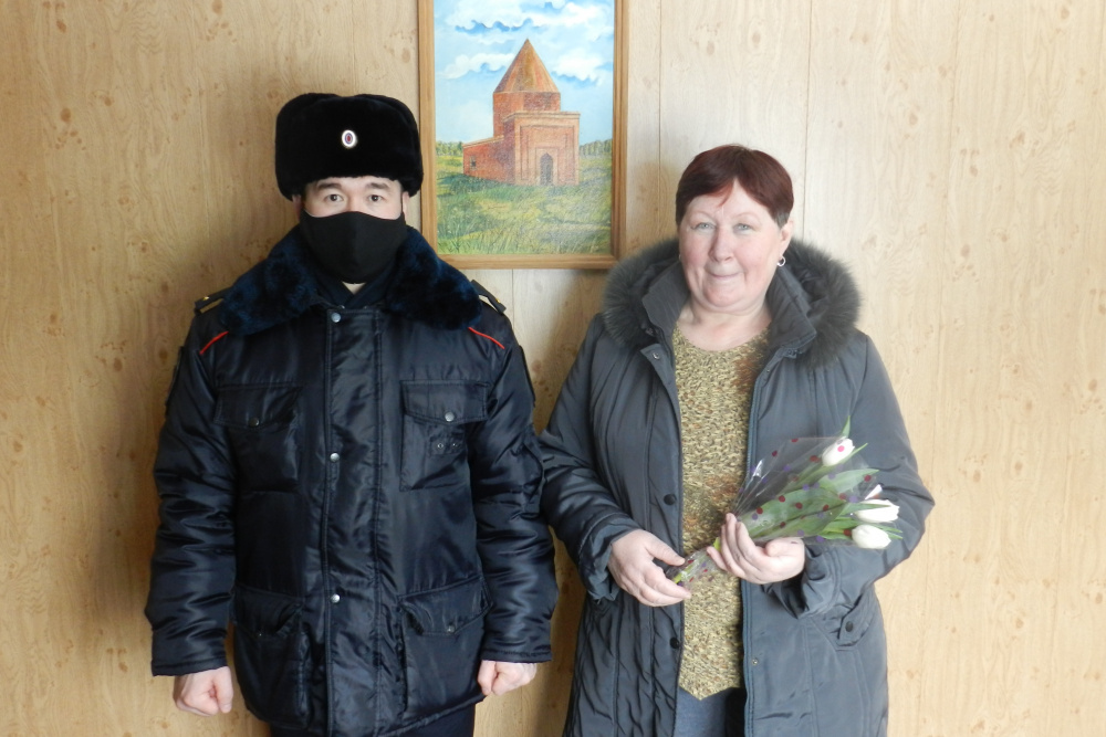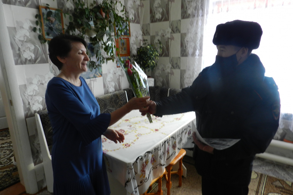 В преддверии Международного женского дня, в рамках Всероссийской акции «8 Марта – В каждый Дом» полицейские, члены Общественного совета и Совета ветеранов при ОМВД России по Варненскому району поздравили жену погибшего сотрудника при исполнении служебных обязанностей Светлану Полякову и женщин – ветеранов ОМВД.