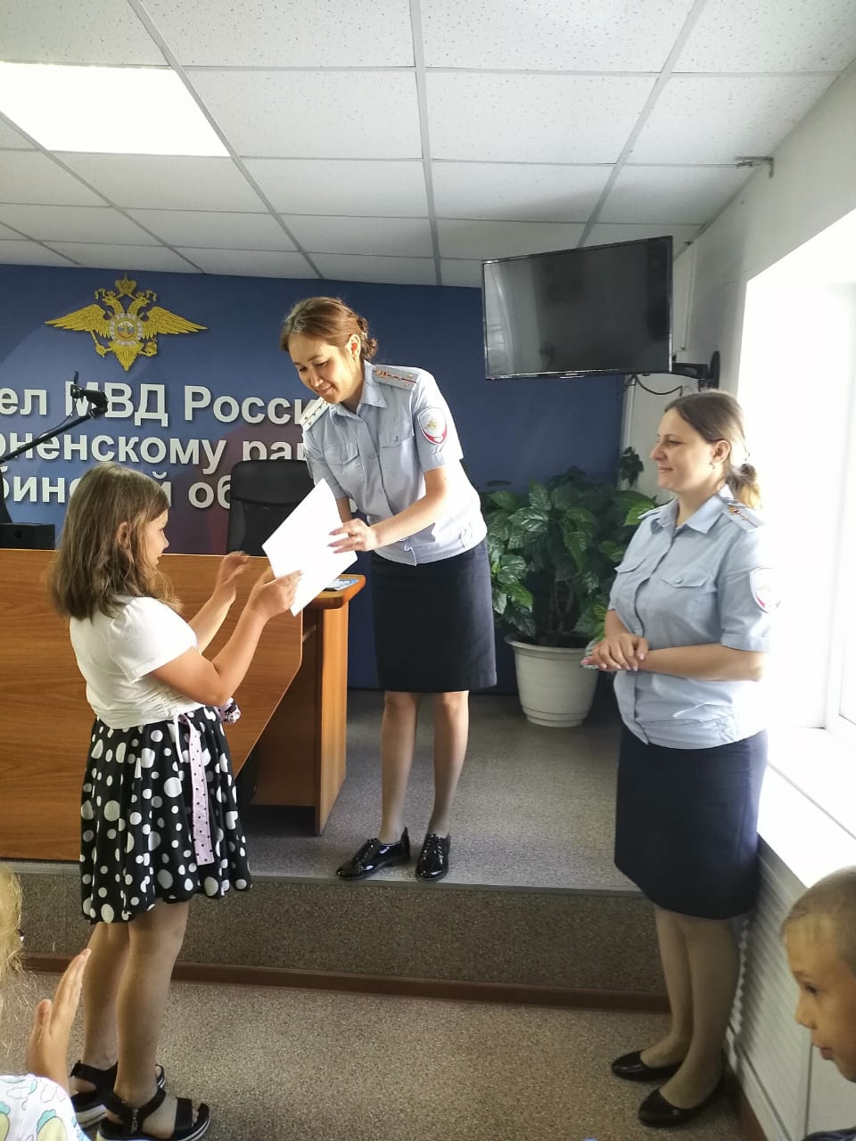 Школьники посетили дежурную часть, узнали, как содержатся административные задержанные, прошли по рабочим кабинетам отдела, увидев работу сотрудников полиции. Затем дети посетили уголок памяти прапорщика милиции Владимира Подберезного, погибшего в служебной командировке в г. Аргун Чеченской Республики.