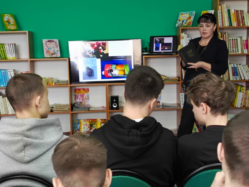 В ходе беседы подросткам библиотекарь предложила подборку книг, в которых поднимается тема терроризма, таких как «Бесы» Ф.М. Достоевского, «Марат» А. Грина, «Рассказ неизвестного человека» Чехова А.П. и «Рассказ о семи повешенных» Андреева Л.