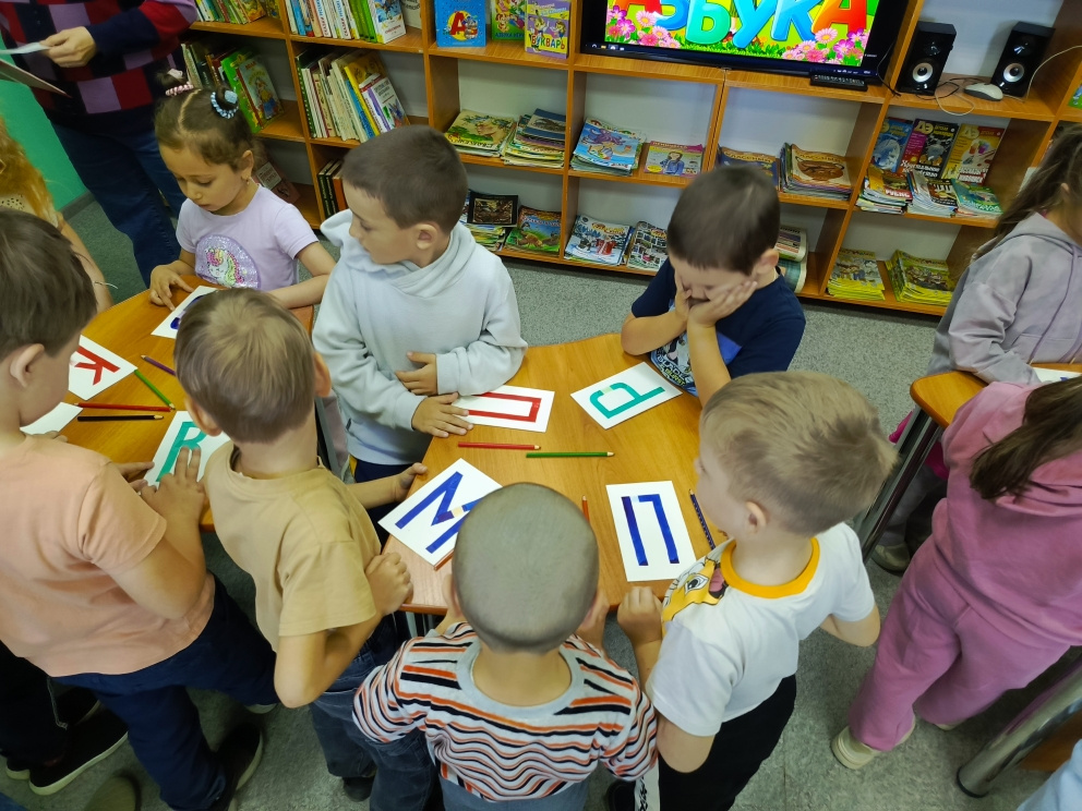 В ходе мероприятия отгадывали загадки, приняли участие в играх: «Дорисуй букву», «Найди букву» и АБВГдейка, но наибольший интерес вызвала игра «Собери букву», где ребята складывали буквы из разных предметов: (пуговиц, монеток, верёвочек, пробок, батареек, фасоли и т.д.).