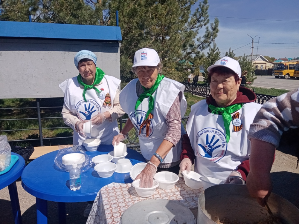 05.05.2023 года Серебряные волонтёры команды «Надежда» МУ «КЦСОН Варненского муниципального района» несли вахту на полевой кухне во время проведения районной легкоатлетической э эстафеты, посвящённой празднованию Дня Победы.