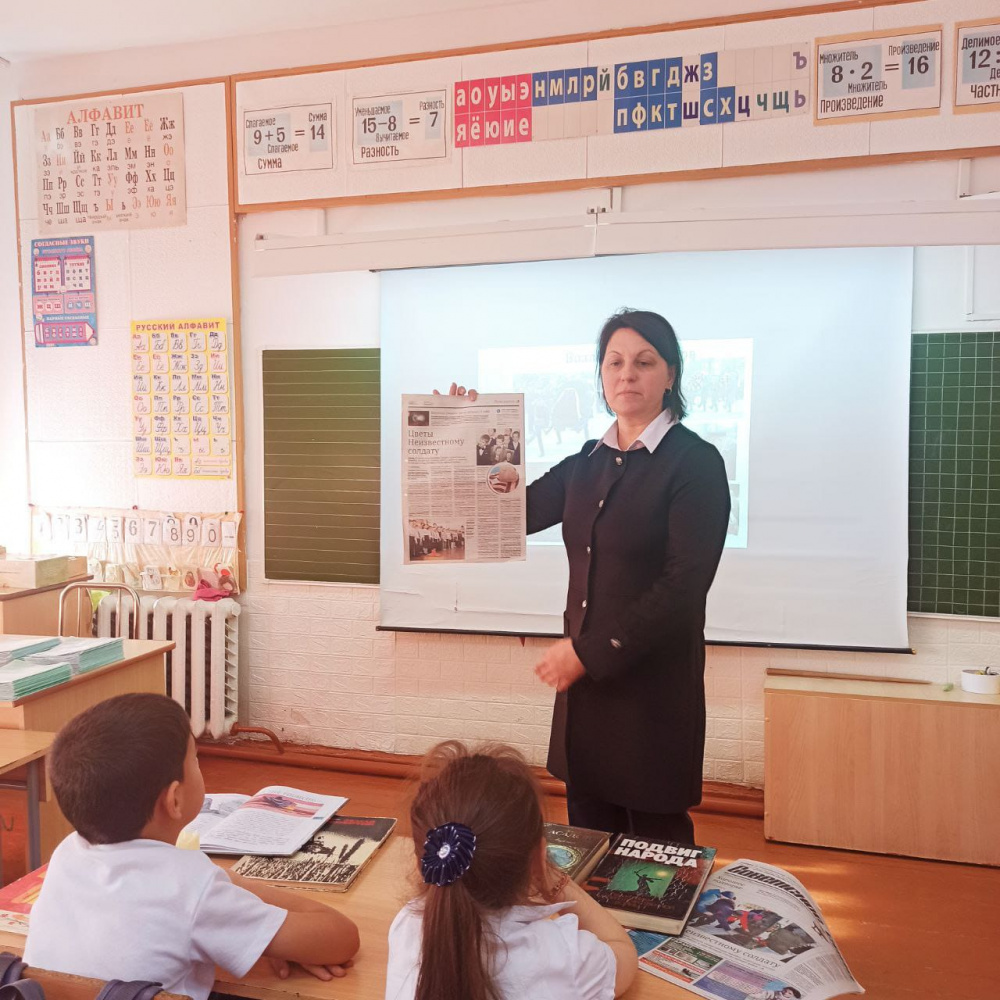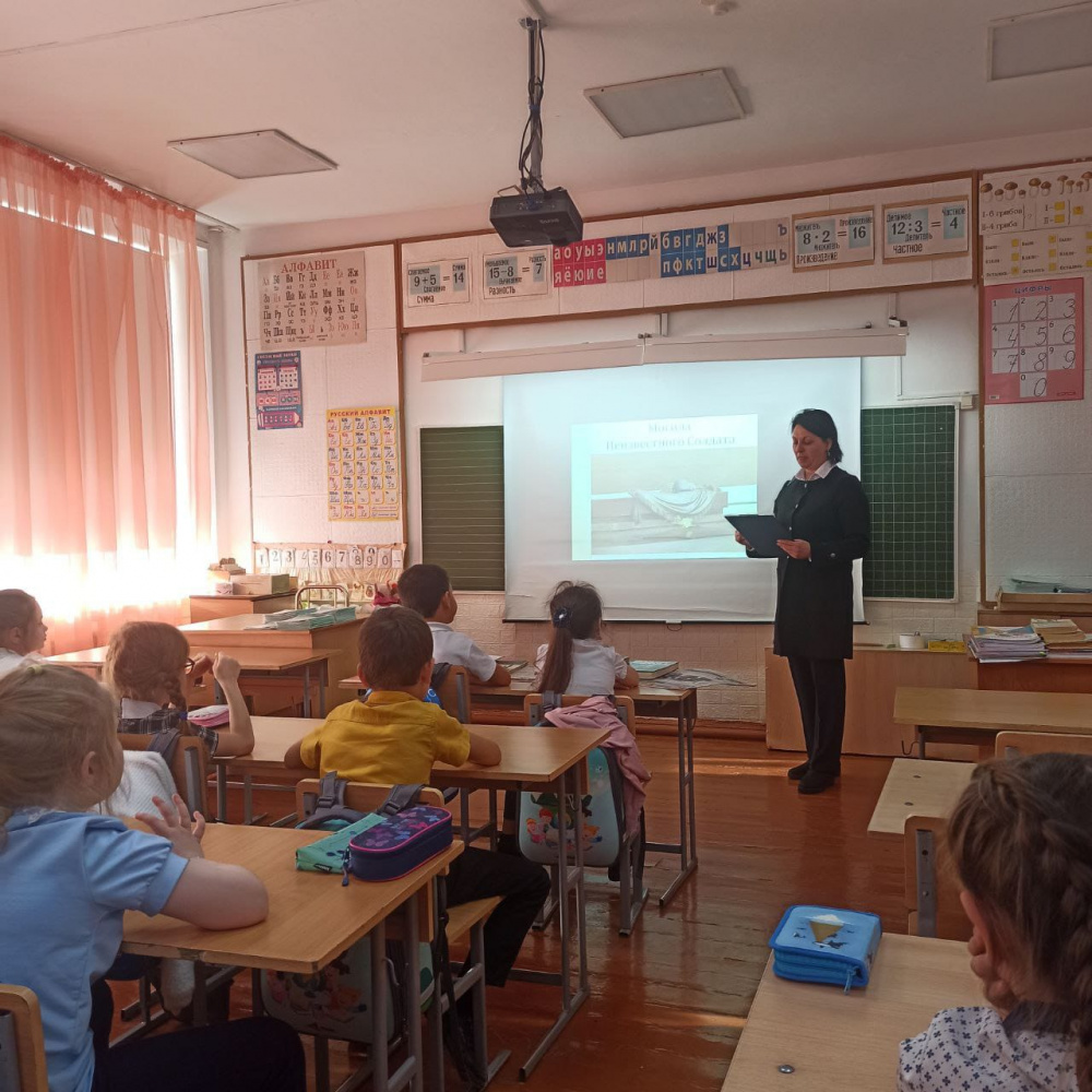 1 декабря 2023 года, накануне памятной даты, с учащимися 1 «Б» класса МОУ СОШ № 1 прошла вахта памяти «О тебе неизвестный солдат», посвященная Дню неизвестного солдата.