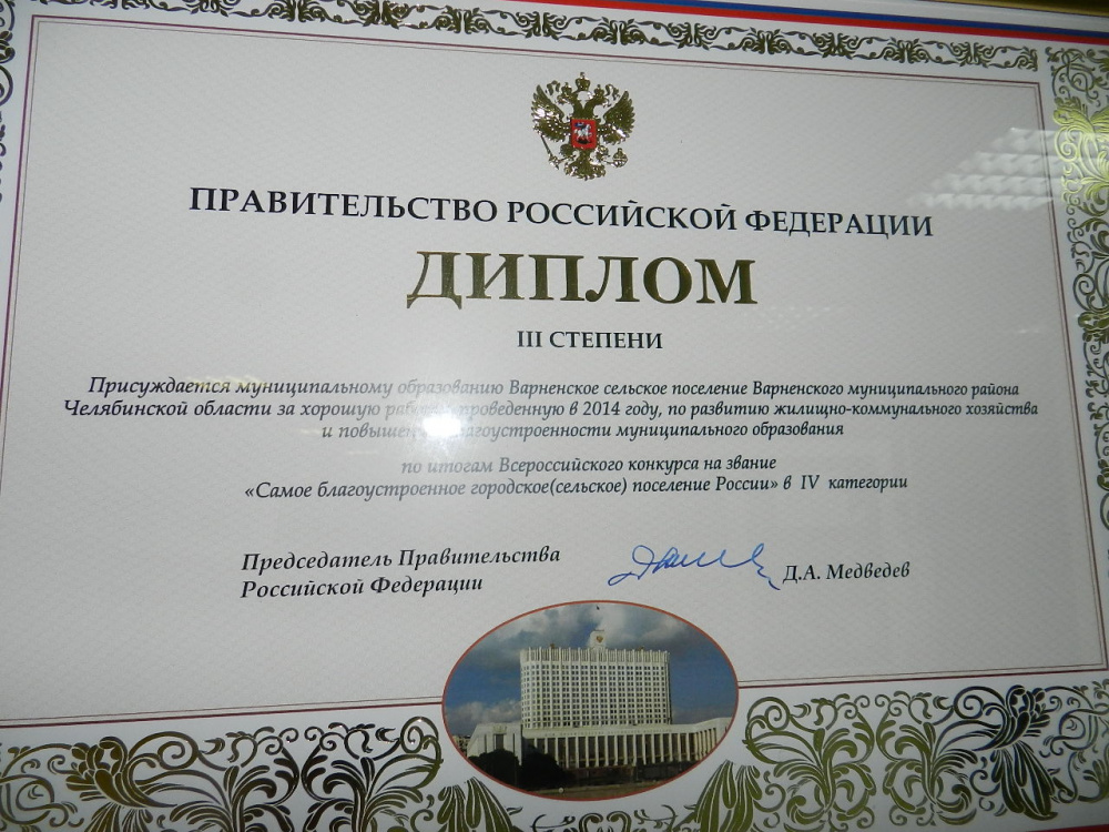 Правительство России наградило победителей конкурса на звание самых благоустроенных городских и сельских поселений. Церемония награждения победителей всероссийского конкурса на звание «Самое благоустроенное городское (сельское) поселение России» по итогам 2014 года состоялась 4 февраля. Награды вручили заместитель Председателя Правительства Российской Федерации Дмитрий Козак и Министр строительства и жилищно- коммунального хозяйства Российской Федерации Михаил Мень. Для участия в конкурсе было направлено 69 заявок из 17 субъектов РФ. Активное участие в нем приняли Республика Татарстан, Калужская область, Челябинская область, Республика Башкортостан и другие. В I категории (города, являющиеся административными центрами субъектов РФ) первое место занял Краснодар, второе поделили Ульяновск и Барнаул, третье – Калуга и Тула. В остальных пяти категориях конкурса первые места достались городам Энгельс, Октябрьский и Мамадыш, а также селам Аскараво, Хвастовичи и Калужская опытная сельскохозяйственная станция. В списке самых благоустроенных поселений России село Варна заняла почётное третье место.