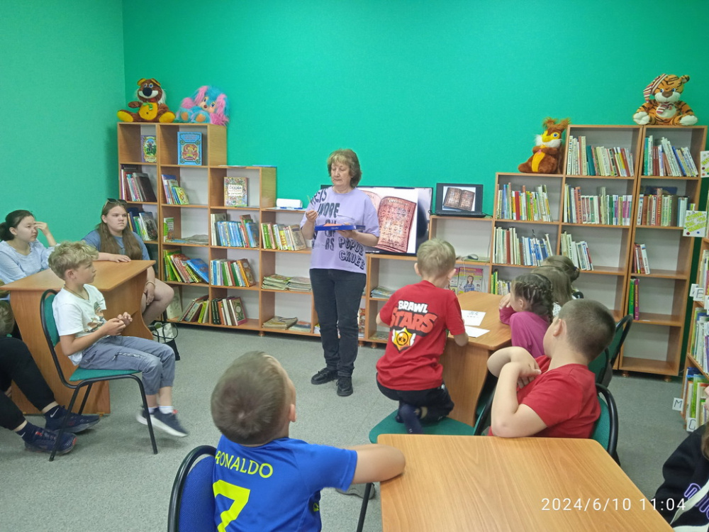 В рамках социального партнерства Варнеской детской библиотеки и районного дома культуры «Планета» 10 июня был проведен час интересного досуга «Сказание о письменах славянских» с ребятами детского оздоровительного лагеря МОУ «Гимназия имени Карла Орфа».