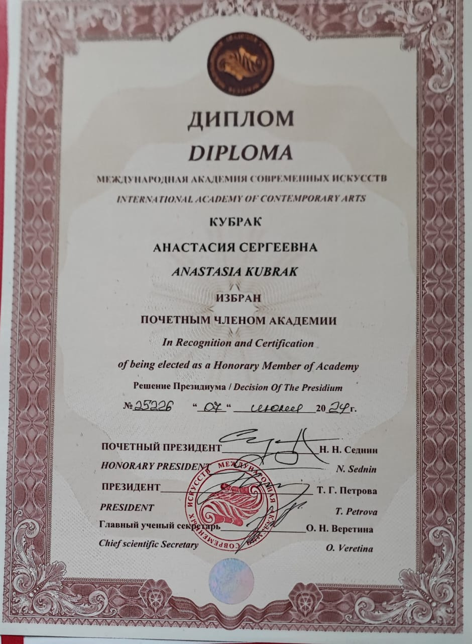 Избрание Анастасии Кубрак в Международную академию современных искусств состоялось 7 июня 2024 года.