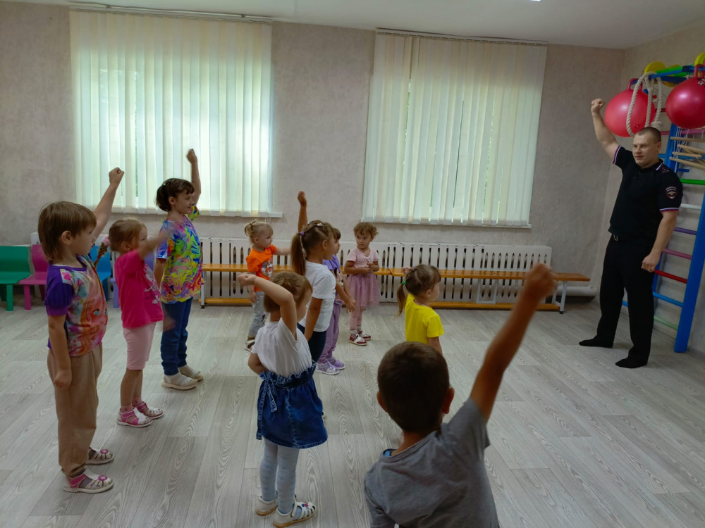 Зарядку для малышей детского сада п. Красный Октябрь провел участковый уполномоченный полиции ОМВД России по Варненскому району капитан полиции Дмитрий Бебик. Открывая спортивное мероприятие участковый уполномоченный поприветствовал детей и пожелал им получить от физкульт-разминки заряд бодрости и хорошего настроения. Под руководством сотрудника полиции детям понравилось заниматься спортом, они с радостью выполняли упражнения, глядя на своего наставника.