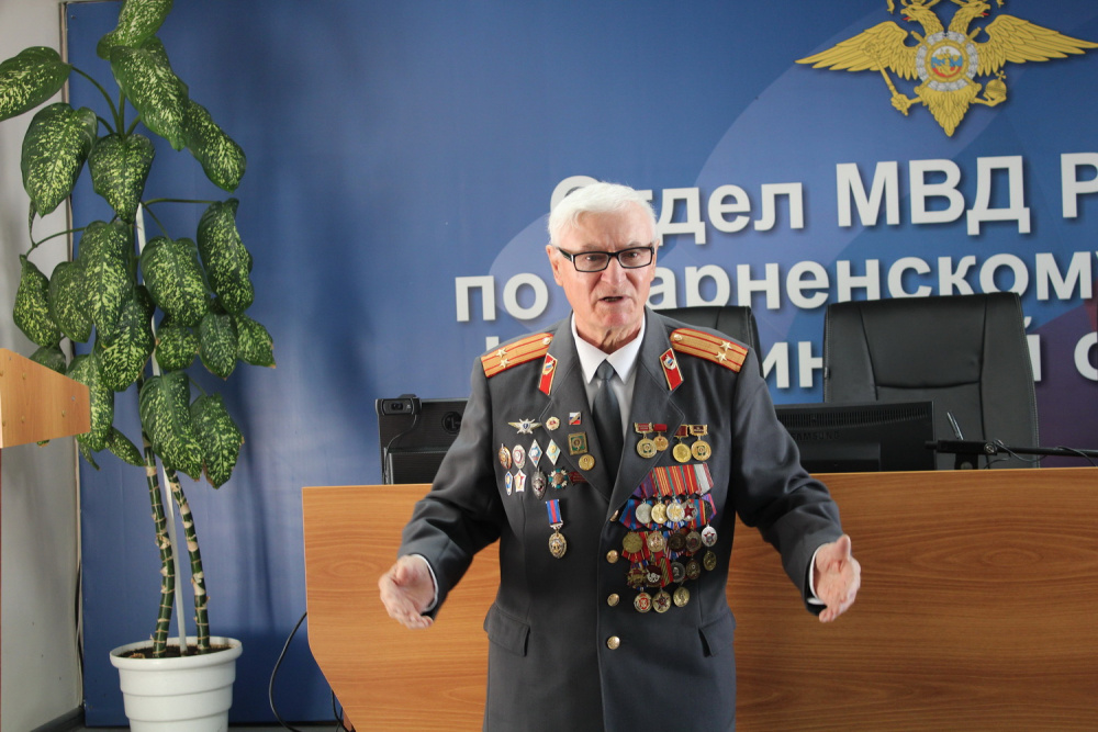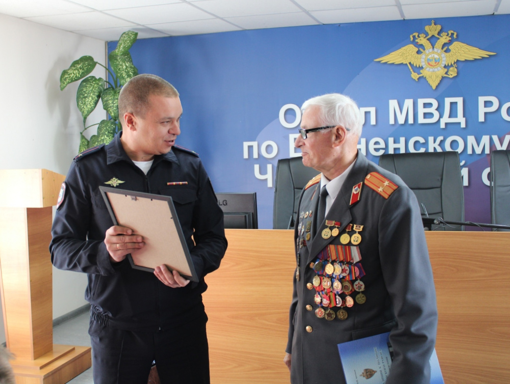Присоединился к поздравлениям и председатель Совета ветеранов майор юстиции в отставке Алексей Коннов, поздравил юбиляра со знаменательной датой, поблагодарив его за безупречную службу и пожелал ему крепкого здоровья и долголетия, безграничного жизненного оптимизм. Он отметил весомый вклад ветерана в службе в органах внутренних дел, верность служебному долгу в воспитание молодого поколения и был вручен подарок от Совета ветеранов ГУ МВД России по Челябинской области,