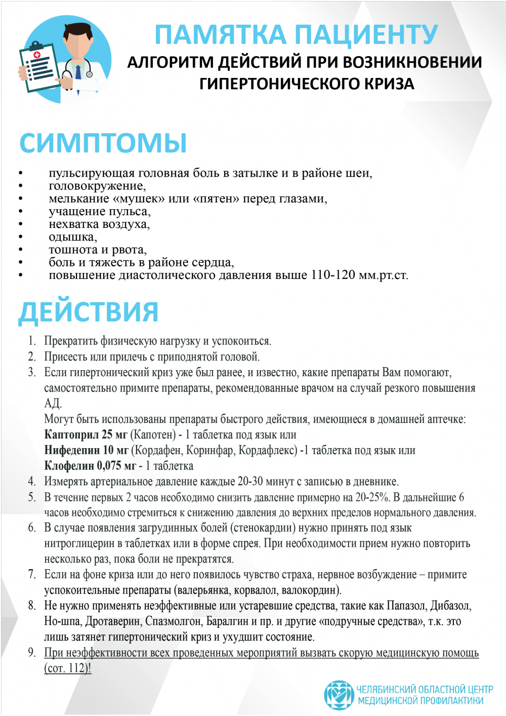 - Взять под язык препараты быстрого действия: клонидин (клофелин) 0,075-0,15 мг, каптоприл (капотен) 25-50 мг, нифедипин (коринфар) 10 мг.