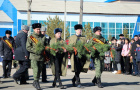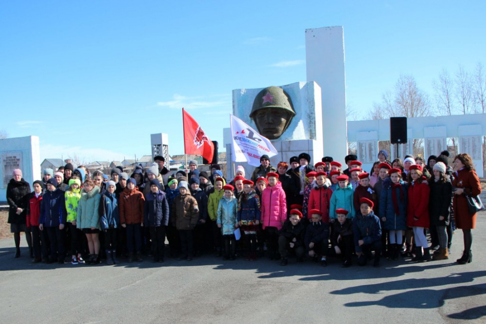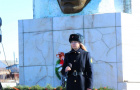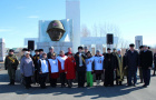 "Символ Победы", миниатюрный пограничный столб с Георгиевской лентой в 11 часов утра был доставлен эстафетной группой к памятнику Мемориал Славы, где в честь этого события развернулся торжественный митинг.