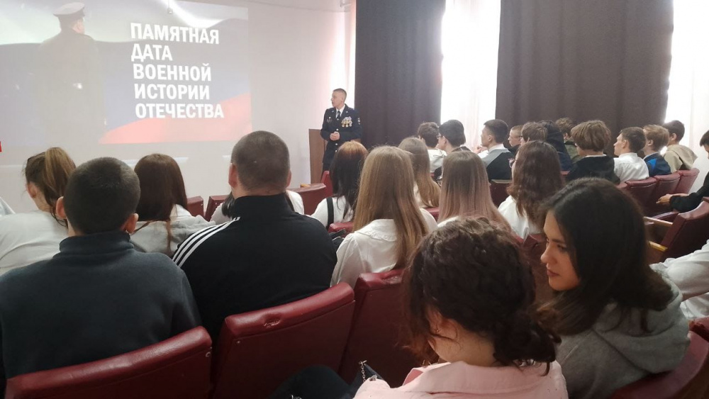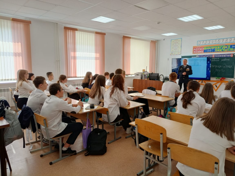 В рамках патриотического воспитания молодежи, в честь празднования 80-летия Победы в Великой Отечественной войне председатель Совета ветеранов ОМВД России по Варненскому району майор юстиции в отставке Алексей Коннов провел Урок мужества для студентов Карталинского многоотраслевого техникума и школьников 9 класса Гимназии им. К Орфа с. Варна.
