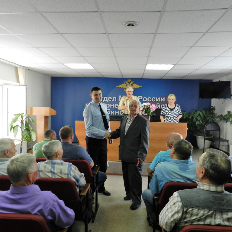 В актовом зале Отдела МВД России по Варненскому району на торжественном собрании собрались ветераны ОМВД для награждения юбилейными медалями «100 лет Советской милиции».