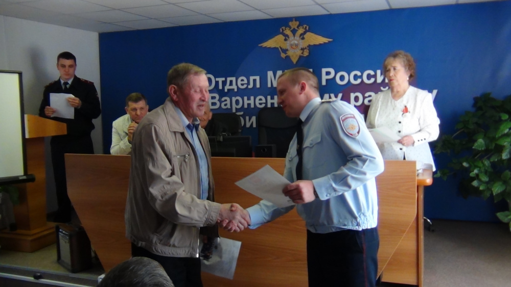 22 апреля 2016 года в актовом зале отдела МВД России по Варненскому району состоялось торжественное собрание, посвящённое Дню ветерана ОВД. На собрание были приглашены начальник отдела подполковник полиции Е.С. Яшников, начальник по работе с личным составом майор внутренней службы Н.Н. Рыбаков.