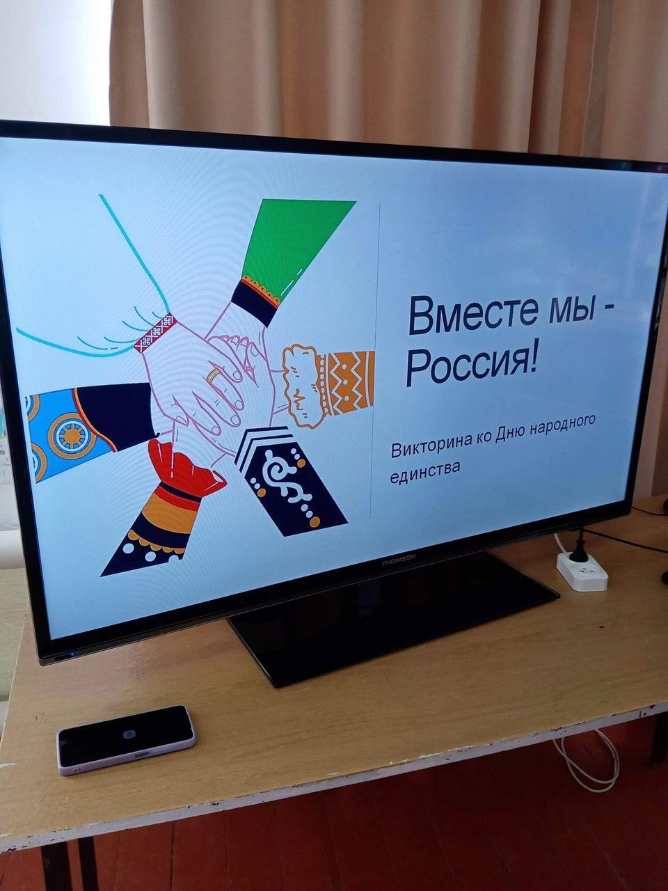 Ребята ещё раз услышали об истории образования праздника, о примерах единения народов России в годы суровых испытаний. В завершении мероприятия была проведена викторина «Вместе мы - Россия». Девчонки и мальчишки дружно и с интересом отвечали на вопросы про великую Россию и её многонациональный народ. Участники мероприятия пришли к выводу, что сегодня, как никогда, мы должны стремиться к единству народов многонациональной России, потому что единство и сплоченность – это великая сила. После мероприятия со школьниками был проведен мастер-класс по плетению маскировочной сети для наших ребят, находящихся в зоне специальной военной операции.