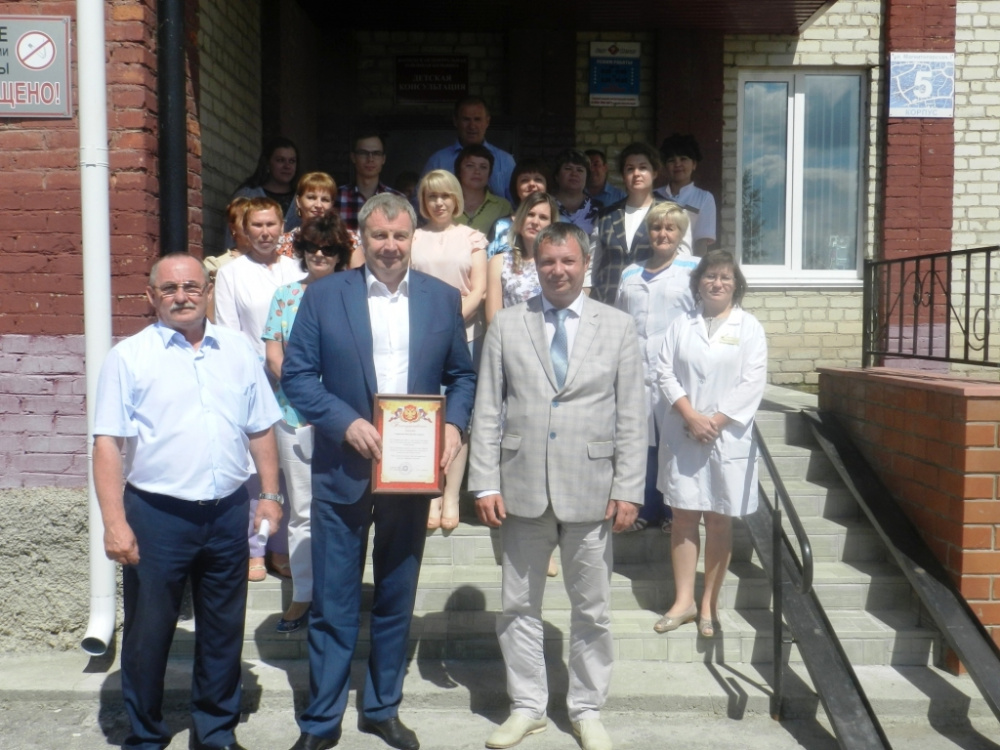 Далее руководством района было организовано посещение объектов в с. Варна. Виталий Викторович осмотрел детскую поликлинику МУЗ «Варненская ЦРБ» после ремонта, главный врач Слинкин Евгений Николаевич вручил ему благодарственное письмо за активную помощь и участие в оснащении педиатрической службы. Также в ходе визита было осмотрено детское отделение, в настоящее время, находящееся на ремонте.