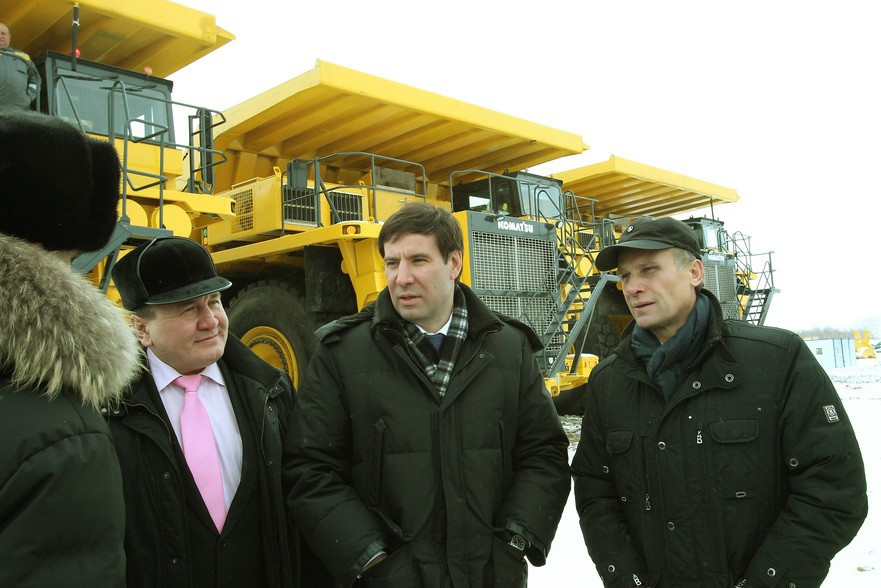 «Сейчас карьер разрабатывается легкой, арендованной техникой, но сам ГОК будет работать на собственной тяжелой технике, которую мне сегодня продемонстрировали. Это 180-тонные самосвалы и экскаваторы, захват ковша которых составляет 100 тонн, – сообщил Михаил Юревич. – Большая часть оборудования, на котором будет вестись производство, не представлена в России. Оно самое современное, будет обеспечивать высочайшую производительность труда». Так, уже закуплены автосамосвалы, гидравлические экскаваторы, гидравлический молот, колесные погрузчики, бульдозеры, автогрейдеры, буровая установка; дробильно-сортировочный комплекс; оборудование обогатительной фабрики.