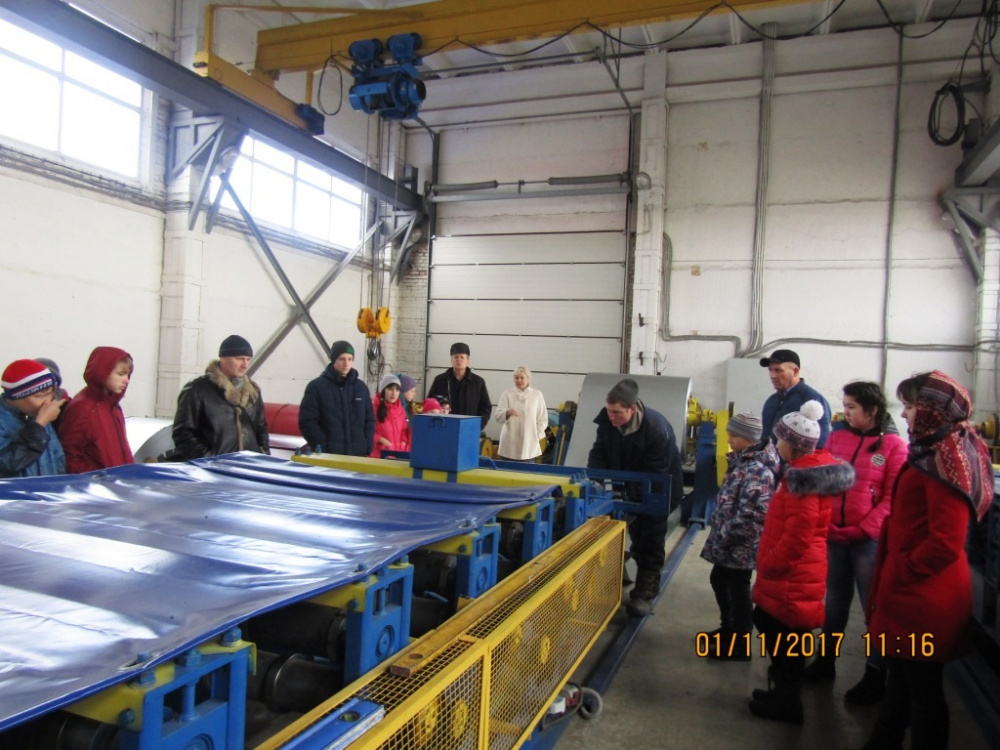 Людмила Владимировна рассказала, как организована работа на предприятии: менеджер принимает заказы и передает их в цех, далее следит за сроками изготовления и поставки профнастила потребителю. Детям был показан весь производственный цикл создания профнастила по индивидуальным размерам как для кровли, так и для забора, фасада. Особый интерес вызвала работа оператора цеха по производству профлиста и листогиба. Специально для детей был продемонстрирован процесс изготовления, по заданным индивидуальным размерам, 10 листов профнастила и показана транспортировка потребителю. Сотрудник с редкой профессией - листогиб профессионально продемонстрировал изготовление оконных отливов.