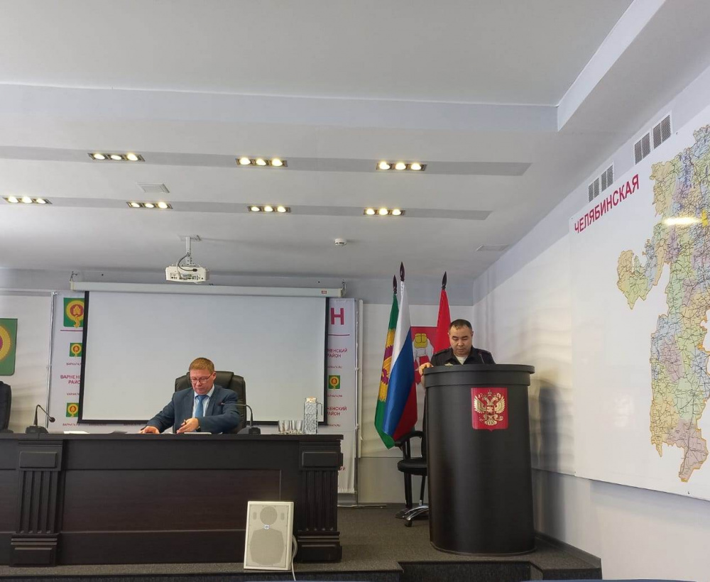 Временно исполняющий обязанности начальника ОМВД России по Варненскому району подполковник полиции Жанат Тюлепаев выступил с отчётом перед депутатами Собрания депутатов Варненского муниципального района об итогах оперативно-служебной деятельности отдела за 2024 год.