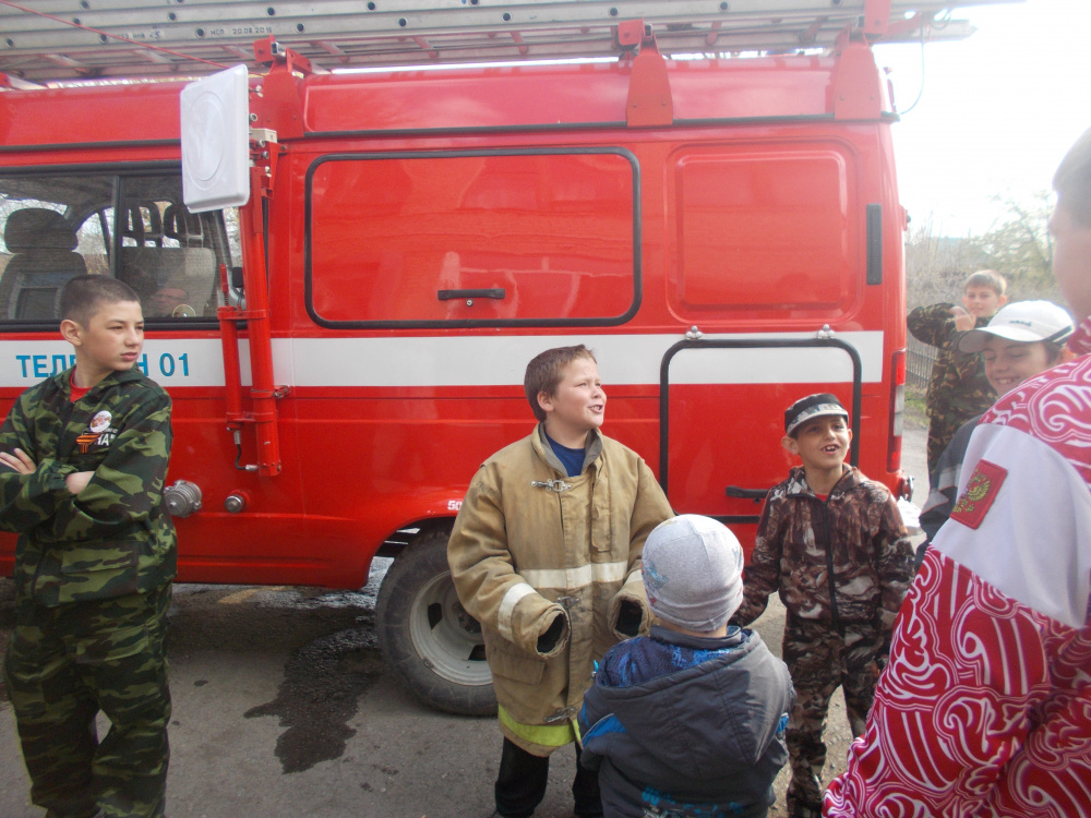 А пожарная машина так и притягивала, любопытство детей ничем не остановишь. Потрогали, посмотрели все – каким инструментом оборудована эта красная машина, какой бак для воды, сколько в ней места для пожарных, а что туда ещё можно положить. Заместитель начальника части Коребо Роман рассказал ребятам о применении этого автомобиля, на какие происшествия, случаи он выезжает. Также напомнил ребятам о правилах противопожарной безопасности, номера телефонов экстренных служб, младшим ребятишкам раздал интересные раскраски со сказочными мультипликационными героями. Ребята сказали, что профессия пожарного очень интересная, но сложная.