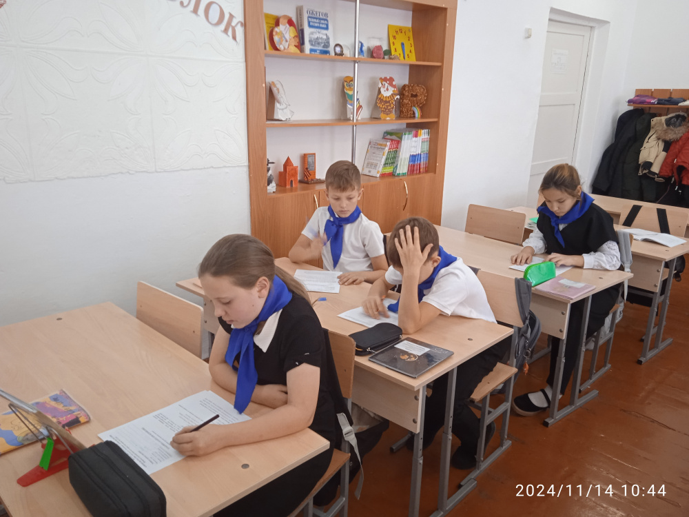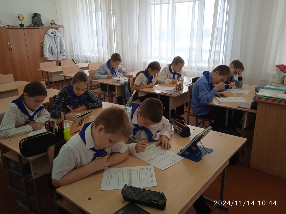14 ноября учащиеся 4 – х классов МОУ СОШ №1 с. Варна приняли участие в первом этапе Всероссийской олимпиады «Символы России. Государственные символы России». Задания включали в себя 10 вопросов, соответствующих возрастной категории 10 – 12 лет. Олимпиада состояла из восьми тестовых заданий, в каждом из которых необходимо выбрать один вариант ответа из нескольких предложенных, и двух заданий, требующих развернутого ответа.