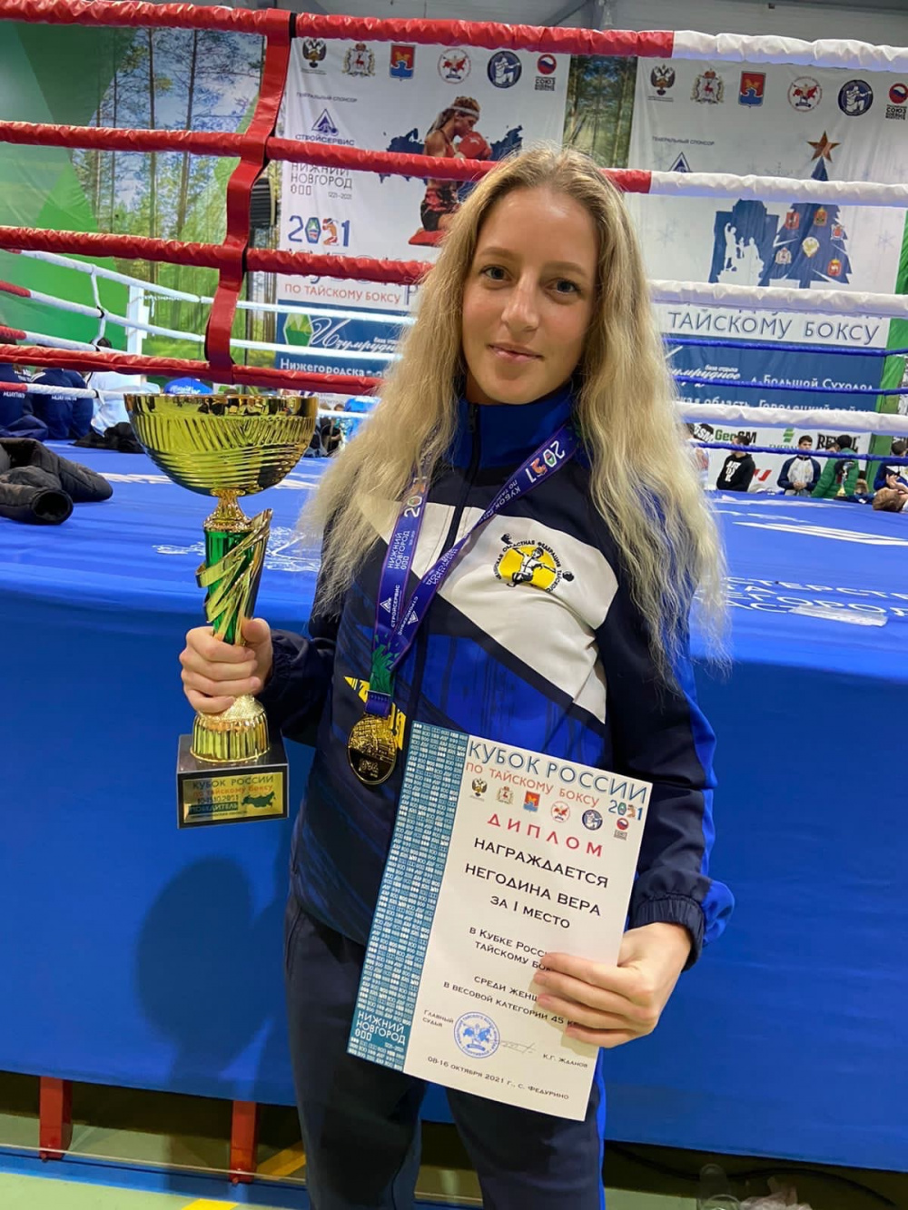 Вера Негодина - заслуженный мастер спорта по тайскому боксу, чемпионка Европы, призёр чемпионатов Европы и мира, 5-кратная обладательница Кубка России, 6-кратная чемпионка страны: